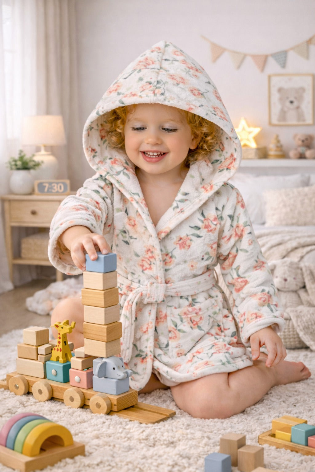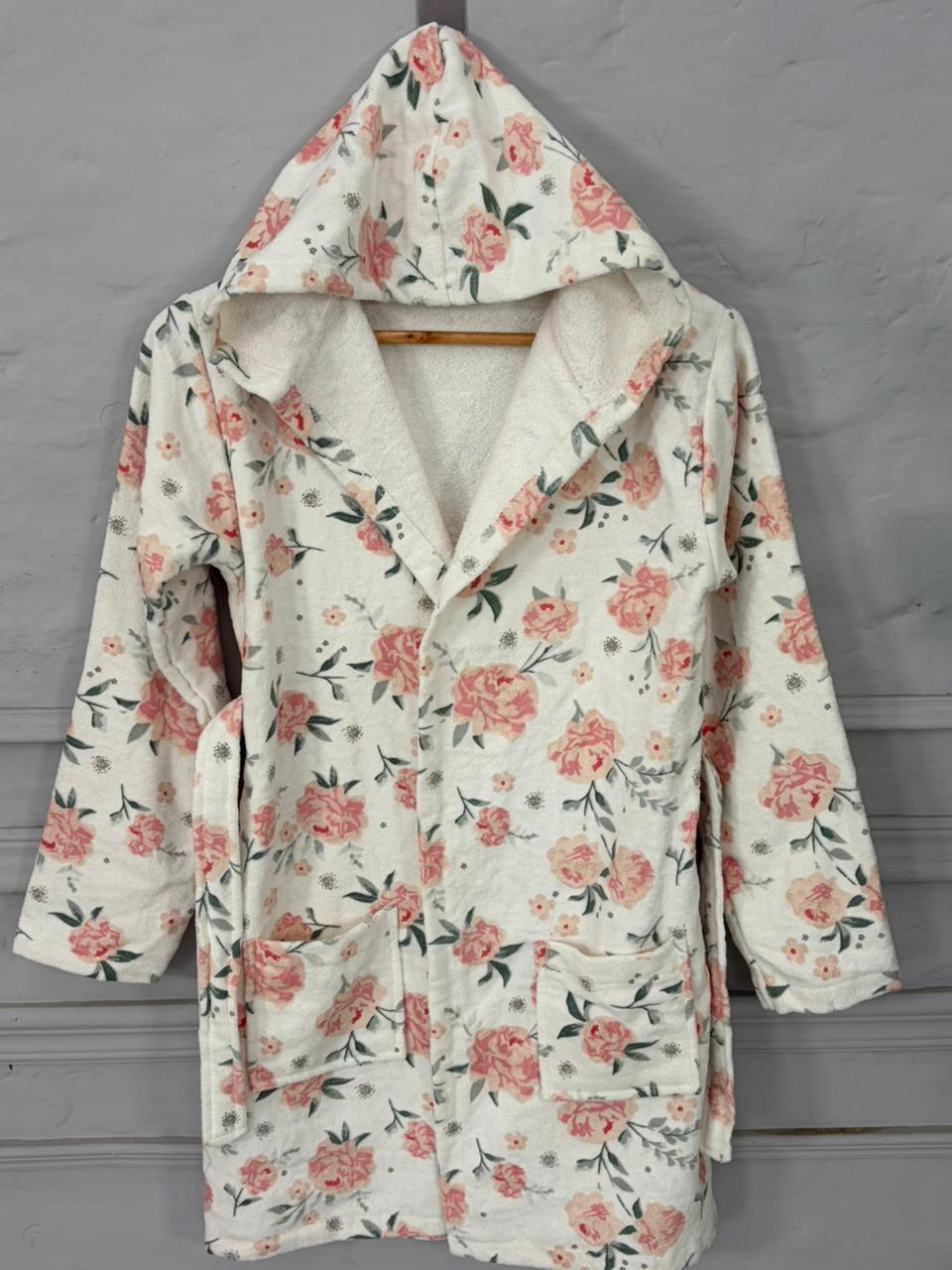 Soft, absorbent cotton kids bathrobe with an attached hood for extra warmth and quick hair drying. Lightweight, breathable, and comfortable for everyday use at home, beach, or pool.